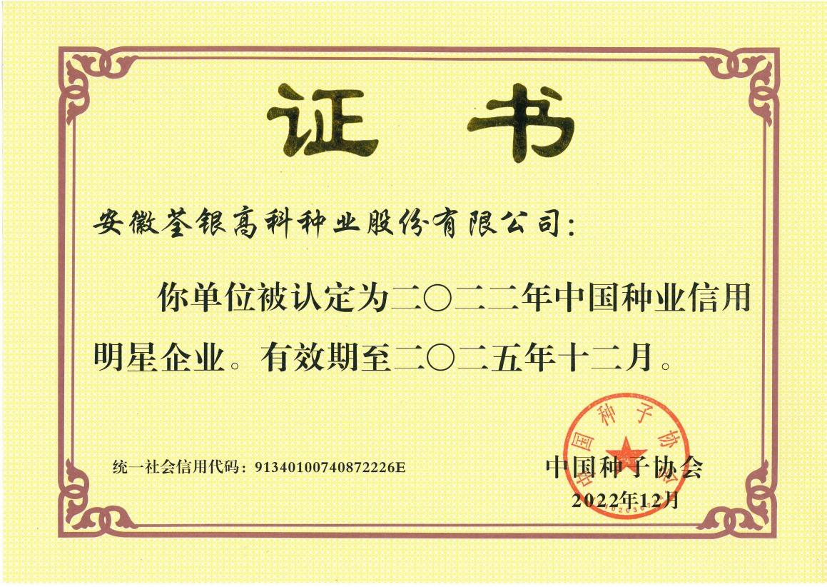 安徽荃銀高科種業(yè)股份有限公司是一家“以種業(yè)為核心、農(nóng)業(yè)服務(wù)為延伸、探索和創(chuàng)新農(nóng)業(yè)多元化發(fā)展”的現(xiàn)代高科技種業(yè)上市公司,證券代碼:300087。公司注冊資金9.47億元,系“中國種業(yè)領(lǐng)軍企業(yè)、農(nóng)業(yè)產(chǎn)業(yè)化國家重點(diǎn)龍頭企業(yè)、國家高新技術(shù)企業(yè)、農(nóng)業(yè)部首批農(nóng)作物種子育繁推一體化企業(yè)、中國種業(yè)信用明星企業(yè)"。在國內(nèi)控股子公司20多家,在國外設(shè)立分支機(jī)構(gòu)4家,良種銷售至全國20多個省(市、區(qū)),出口覆蓋20多個國家與地區(qū),種業(yè)綜合實(shí)力、雜交水稻研發(fā)、推廣及海外業(yè)務(wù)規(guī)模均居全國種子企業(yè)前2位。
